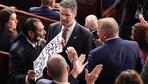 Der Demokrat Al Green wurde wegen eines Protestplakats gegen Trump aus dem Saal gebracht. Andere Demokraten brachten Trump-Kritiker als Gäste mit, darunter Epstein-Opfer. Der Demokrat Al Green wurde wegen eines Protestplakats gegen Trump aus dem Saal gebracht. Andere Demokraten brachten Trump-Kritiker als Gäste mit, darunter Epstein-Opfer. |